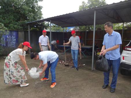 黨員志愿者一到局包村,不顧高溫和氣候的不利影響,就緊張地投入到衛(wèi)生整治活動中,大家拿著鐵鍬、掃把、小鏟刀、垃圾袋等工具,清掃廣場、路面、清運垃圾、鏟除雜草、小廣告,不放過任何衛(wèi)生死角,經(jīng)過一段時間的奮戰(zhàn),官埠村黨群服務中心面貌煥然一新,通過辛勤的勞動,黨員看到“讓鄉(xiāng)鎮(zhèn)多一份文明,讓百姓多一份滿意”的標語格外醒目。