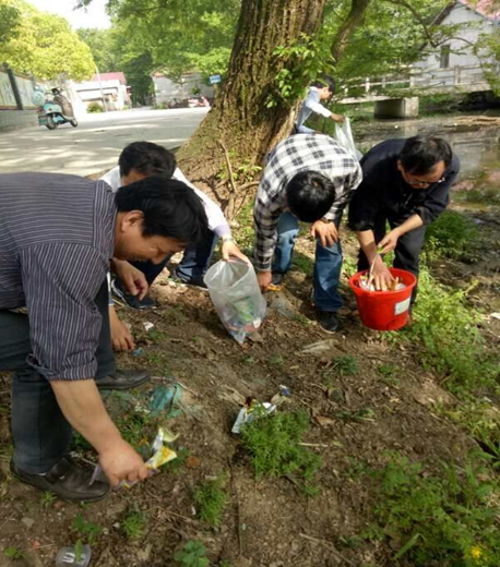 放學后,黨員佩戴黨徽,帶著清白工具,興高采烈地在大門口集合。先沿本部門前河旁撿拾垃圾,每個人都表現出了很好的勞動熱情,不放過眼前一片細小的垃圾紙袋。當撿到小店門口時,店主見此情此景,很誠懇而略帶難為情地說“我自己撿,還要你們撿!”“要的就是你這句話,這種效果”。有人微笑著應和著……