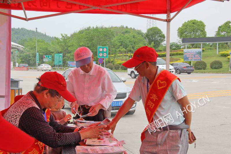 “五一”小長假,高速通行免費自駕游的火爆,青陽景區也將迎來大批游客。為推進文明旅游城市形象。倡導文明和諧的旅游環境旅游。青陽網志愿者服務隊組織志愿者開展文明旅游宣傳引導志愿服務活動。早上8點不到, 志愿者們就已經在高速公路出口搭好了志愿服務點,桌子上整齊的擺放著青陽旅游指南,九子巖、 蓮峰云海、 清源山等青陽知名景區介紹宣傳冊,此次活動共有7名青陽網志愿者參加。他們放棄自己假日休息的機會,以禮待人,微笑服務,為外地前來旅游的游客指引道路,提供吃、住、行、游、購、娛等相關咨詢服務。并送上青陽旅游的相關宣傳材料。我們應該向他們無私奉獻的精神表示感謝和敬意。