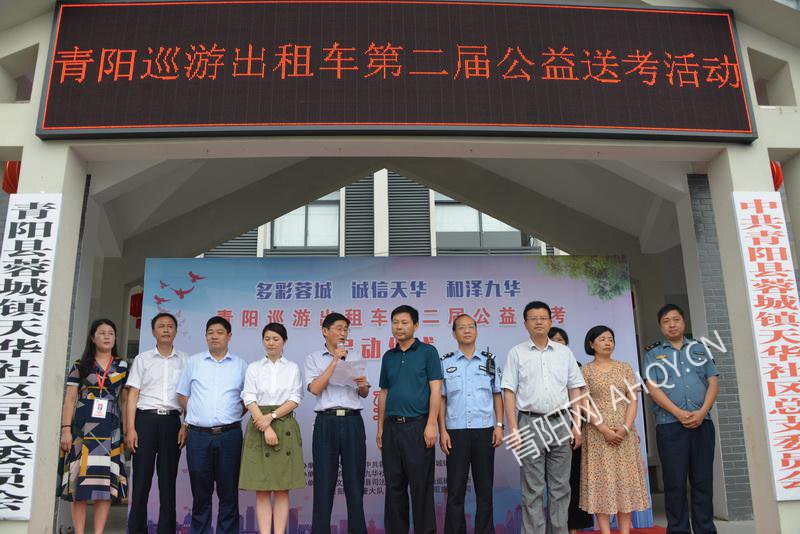 炎炎6月,一年一度的高考即將來臨。為讓青陽縣廣大高考學子安全,快捷、準時抵達考場,以良好的身心狀態奔向人生又一個更高的目標。5月29日上午,由青陽縣交通局、中共蓉城鎮委員會、蓉城鎮人民政府主辦,天華社區和九華社區承辦,縣文明辦,縣司法局,青陽縣交通運輸管理所,青陽縣交警大隊,池州杰達青陽旅游公司協辦的“領跑幸福 公益送考”——2018年青陽縣巡游出租車第二屆公益送考活動正式啟動。
