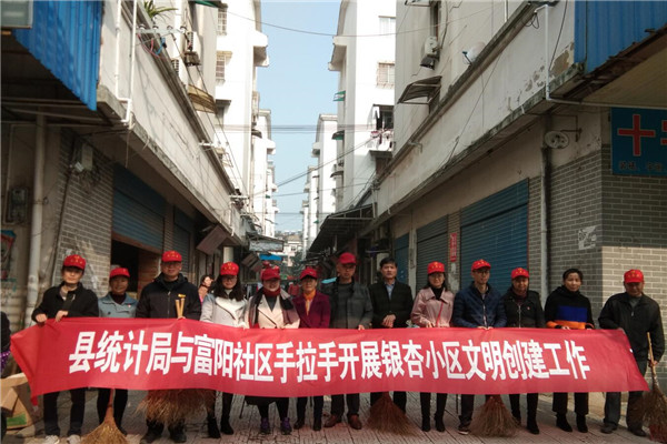 為進一步夯實爭創全國縣級文明城市的基礎,加快城區的創建步伐,切實提升城市管理水平,大力改善人居環境,根據《關于開展縣直和駐青單位聯系社區小區文明創建工作的通知》青文委〔2018〕14號文件要求,縣統計局與富陽社區一道深入銀杏小區開展文明創建工作。