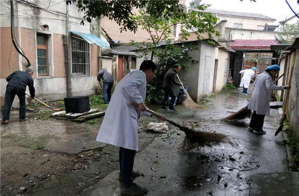 全體文明創建領導小組成員及志愿者帶著衛生工具來到聯系社區的環衛重點區域以及背街小巷,清理衛生死角,排除安全隱患。活動中,大家紛紛拿起工具,有的用掃帚清掃路面,有的清理衛生死角。雖然陰雨綿綿,但是大家發揚不怕苦、不怕累的精神,經過1個多小時的辛苦勞動,環境衛生得到了改善,環境面貌煥然一新。
