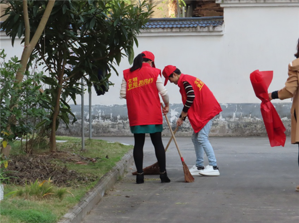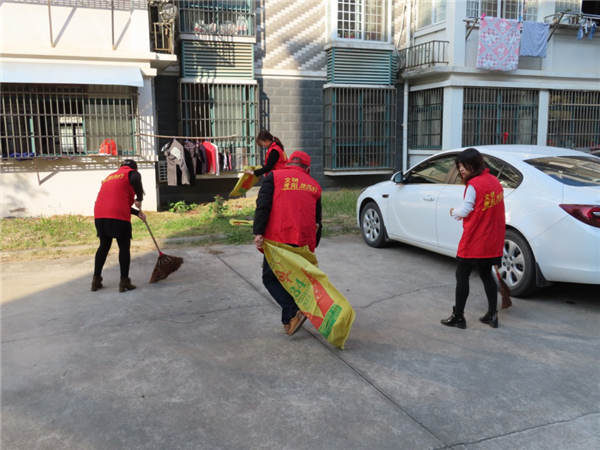 在長龍社區教工之家小區,志愿者們開展清白行動,清理小區墻角的雜草、落葉等垃圾,并向小區居民宣傳環保知識,注意環境衛生,共同維護小區清潔家園。有的向小區及路過的居民發放關于“煙花爆竹禁放”的倡議書。(青陽中學)