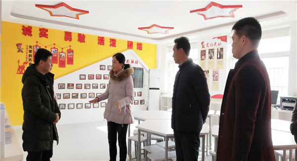 朱蕓蕓一行人圍繞三小少先隊陣地建設,先后參觀了少先隊活動室、鼓號隊室和紅領巾廣播站,并查閱了少先隊檔案資料,聽取了學校關于少先隊室的基礎建設以及特色活動的開展情況。在功能設施齊全、環境優美整潔、活動資料豐富的隊室里,大家對三小少先隊各方面工作給予了充分的肯定與贊賞。