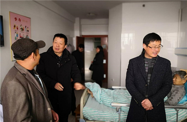 2019年2月4日上午,正是農歷大年三十,縣委常委、宣傳部長吳偉代表縣委、縣政府看望慰問了春節期間在院的住院病人,向春節期間不能與家人團聚的住院病人送上新春的問候和美好的祝福,詢問他們的身體狀況和生活情況,并囑咐他們要積極配合治療,安心養病,爭取早日康復,為每位病人送去了慰問金,送去黨和政府的關懷和溫暖。醫院為每位住院病人免費提供了豐富多彩的年夜飯,讓住院病人在春節期間感受到了關愛與真情。縣衛計委陳文斌主任及院領導班子成員參加了慰問。