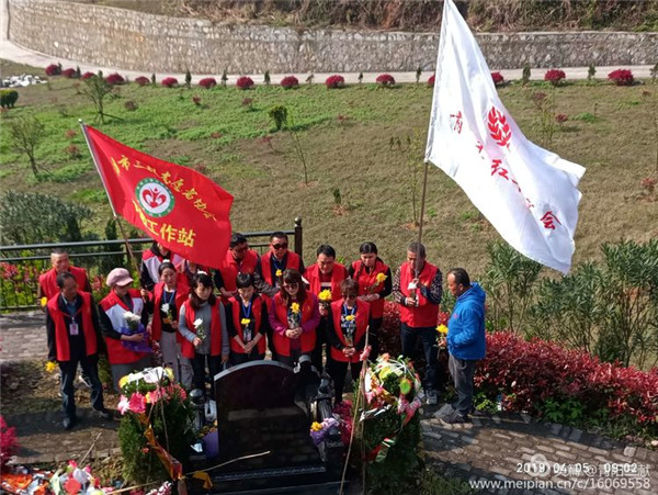 2019.4.5日清明節,青陽縣紅十字會、青陽三獻組織志愿者為青陽縣遺體器官(角膜)捐獻者掃墓活動,對青陽縣遺體器官(眼角膜)捐獻者致以深切的緬懷,感謝他(她)們無私奉獻的大愛精神。