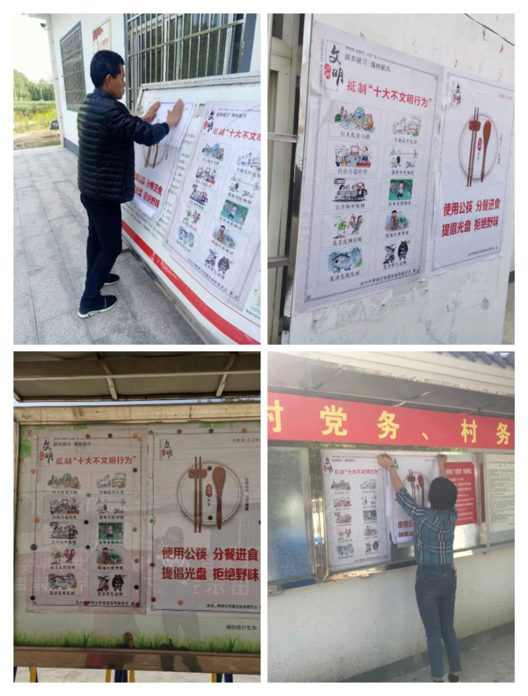 活動緊扣宣傳主題開展公益宣傳。在各類公益廣告設置宣傳的基礎上,圍繞“文明健康,有你有我”和“摒棄陋習,倡樹新風”兩個主題,通過綠色環保、健康生活、文明行為、良好心態、環境保潔、共筑新風6個方面選題的宣傳做到抵制“十大不文明行為”。志愿者在全鎮范圍內的各村宣傳欄、廣場、超市飯店等醒目位置張貼文明健康公益廣告的宣傳畫,遇到有疑惑的行人,大家悉心為他們講解,號召每位村民都爭當文明人。(楊田鎮)此次活動營造出濃厚的宣傳氛圍,號召村民文明村鎮的建設應該做到人人參與、人人維護。