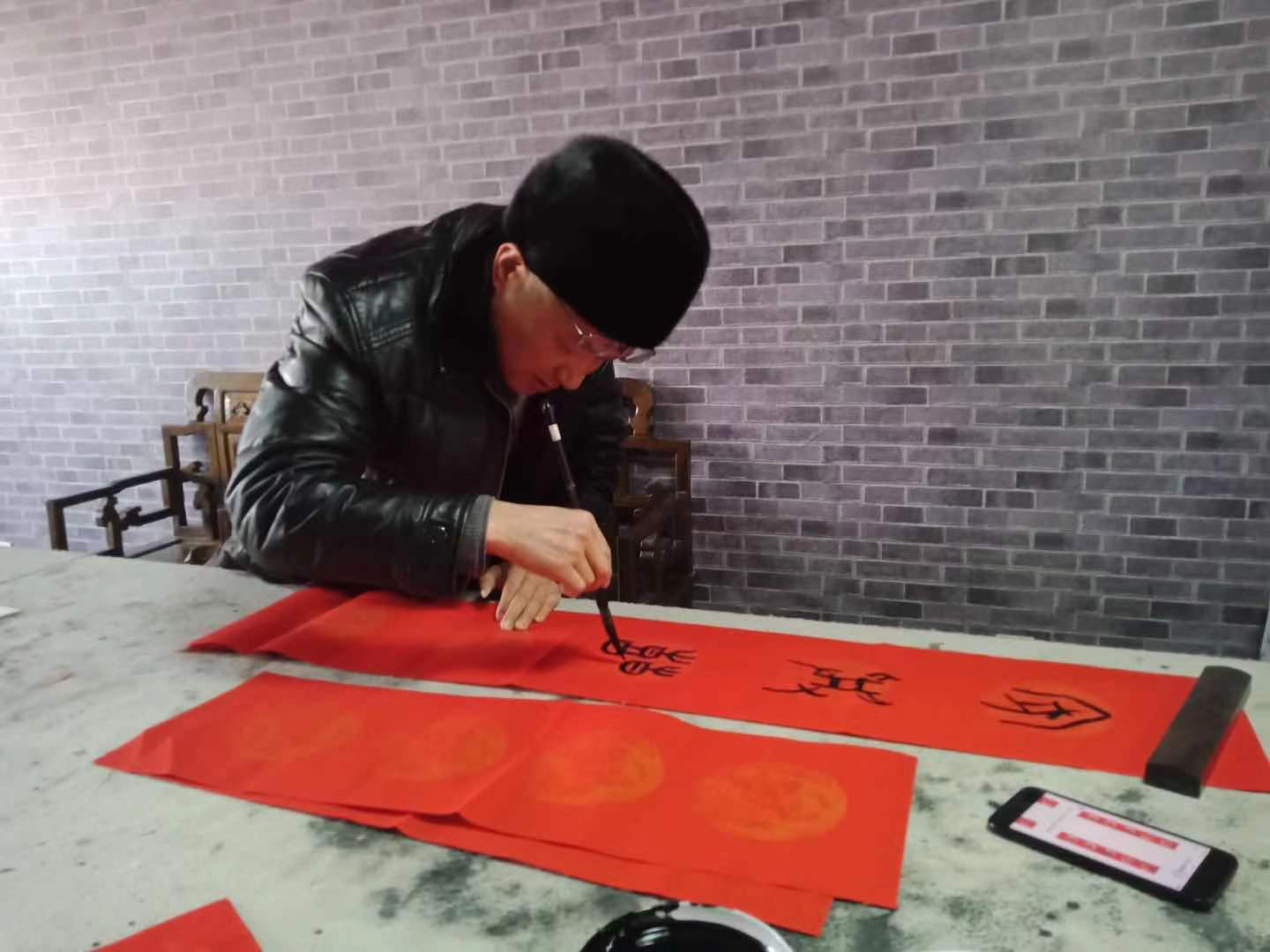 近日,青陽縣書法家協會在九華文創園舉辦了“迎新春,送春聯”文明實踐活動,這次的活動沒有往年人聲鼎沸的場景,只有各位書法家在春聯紙上專注的“揮毫潑墨”。為減少人員的聚集,現場未邀請一名群眾參與。春聯書寫完成后,各位書法家紛紛帶上春聯到各鄉鎮村委會,將500余副春聯交到各村干部手中,由村干部將春聯送給需要的群眾中去,“隔空”給群眾送上新年祝福。