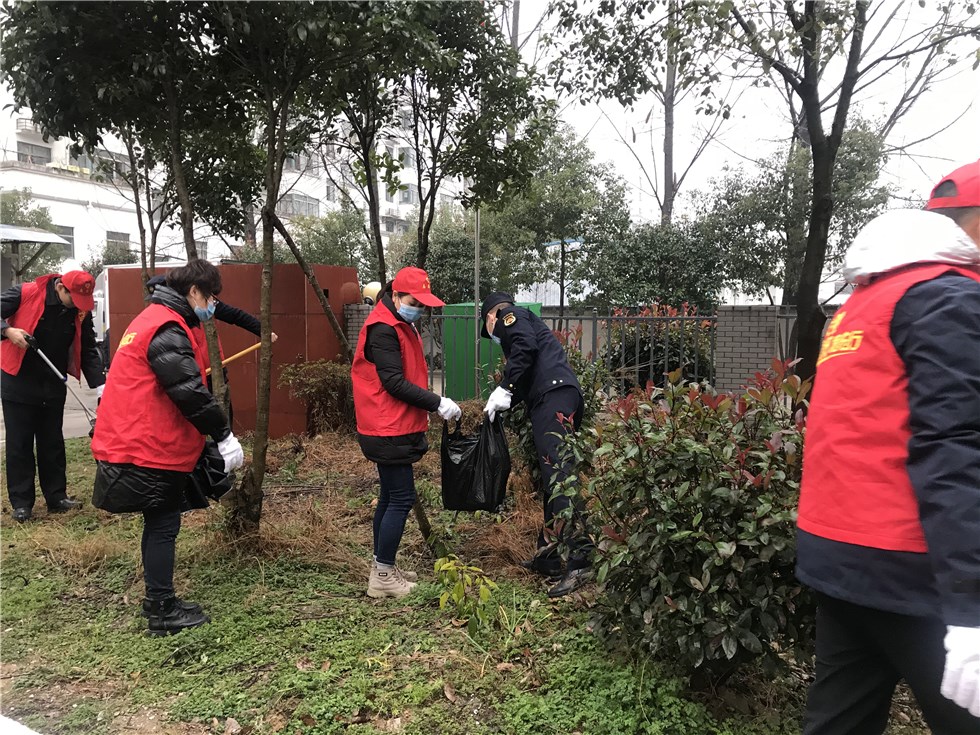 雖然天公不作美,天空飄起了小雨,但大家熱情不減,帶齊工具,準時集合,一個個小紅帽躍動在小區綠化帶和墻角等平時保潔清掃時容易被遺忘、積攢雜物的地方。沒過多久,就將這些地方清理的干干凈凈,煥然一新。