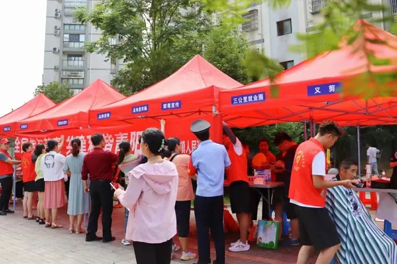 “我家的電風扇總是一下轉一下不轉,麻煩你幫我看看?!薄拔疫@段時間經常頭暈,請你幫我量下血壓?!薄眨粓鰟e開生面的周末集市活動開進了蓉城鎮東河園社區,讓原本安靜的小區一下子熱鬧起來?;顒蝇F場,各攤位大顯神通,煙頭兌換、健康義診、愛心義剪、三公里就業圈、法律咨詢等日常服務,贏得市民一致好評。